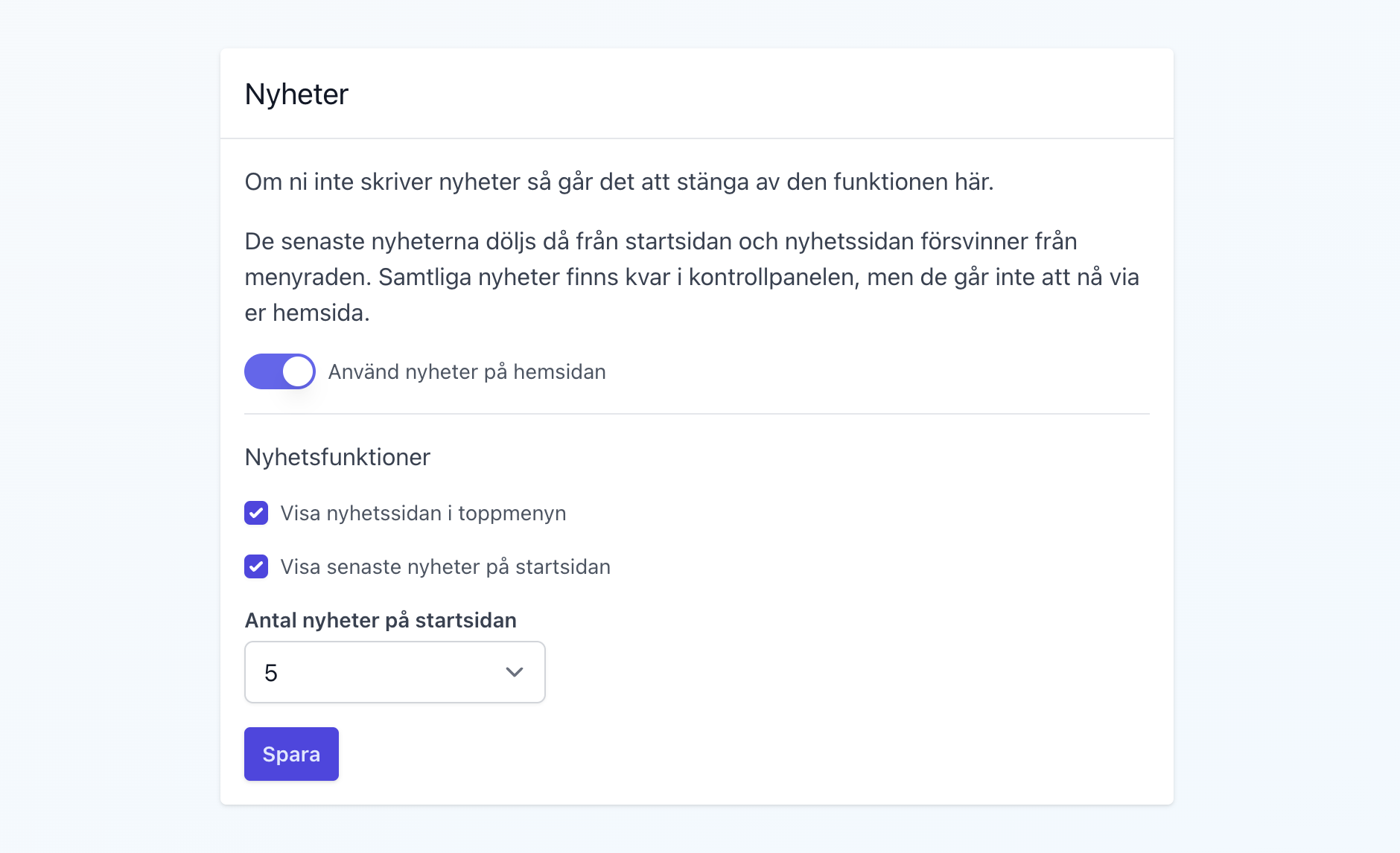 Vi har nu släppt en uppdatering som ger er större möjligheter att anpassa hur nyheter visas på er hemsida. Det är nu möjligt att: